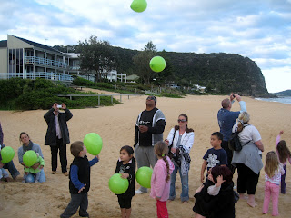 What a beautiful evening. Never did I think my balloon release event would be so successful and powerful. We had approximately sixty people there and seventeen babes represented on the beach that night. Too many babes. It was a very windy day, but somehow the wind died down by dusk and the families talked, laughed and children ran around like pixies on the sand. The peace and tranquility was unmissable as people bonded over their lost little ones. Sam and Adrian sang beautiful tunes as people milled around, lighting candles for their babes and having their balloons blown up. I said a few words prior to the release. Words I had prepared and practiced...however, that didnt matter I started crying before my speech was over. That was embarrassing, kinda. Because I wasnt expecting it and I wasnt composed at all! I knew everyone understood, but I'm not a public crier, so it was a challenge for me to show that side. Sam and Adrian then sang "Big Jet Plane" by Angus and Julia Stone...a song we chose because it reminded us of how Jack said Sybella had taken a rocket to Heaven. Balloons were released into the sky as I called the babies names one by one and it was a beautiful blue sky filled with green balloons, ready to be caught by the souls in Heaven. It was a magnificent sight.